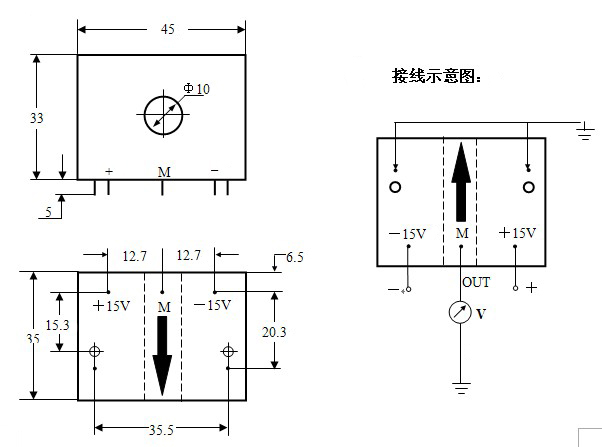 入、出信号提示:為(wèi)了得(de)到小(xiǎo)相移信号輸出,被測電(diàn)流應按箭頭指示方向流動