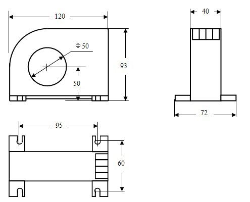 安裝:外殼基座有(yǒu)4個(gè)7mm的孔槽,螺釘緊固